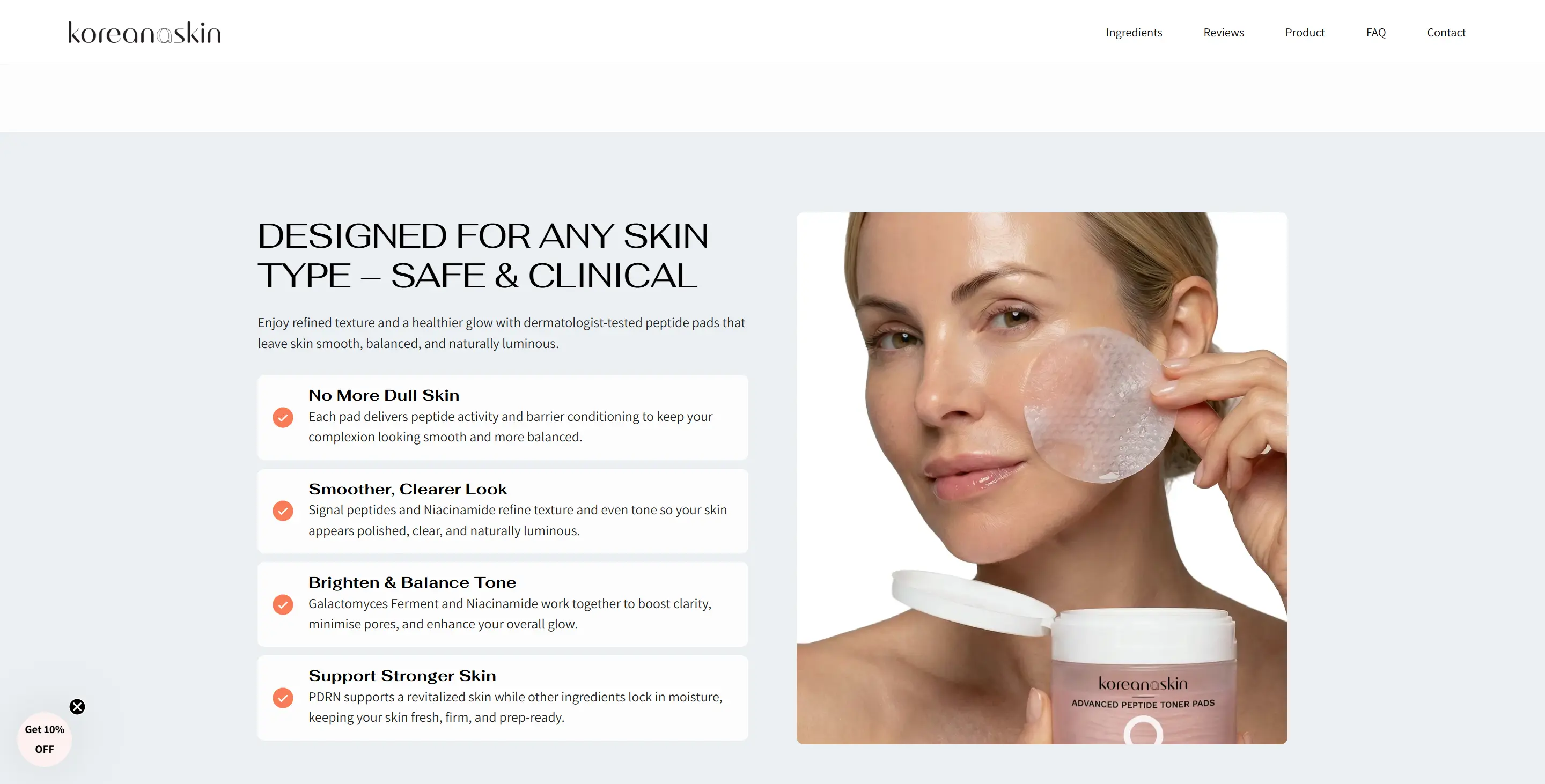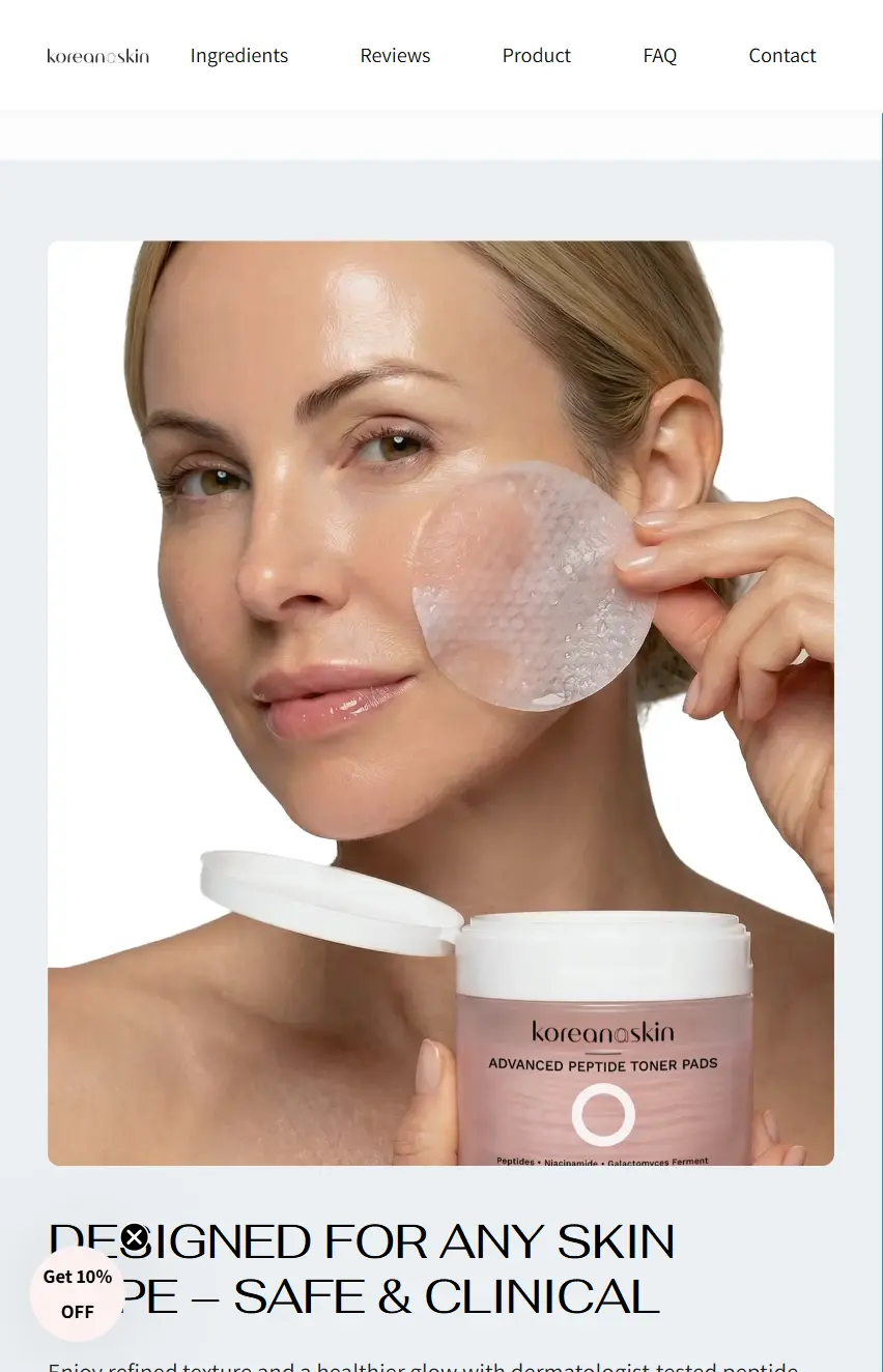 Koreana Skin Peptide Toner Pads combine signal peptides, PDRN, niacinamide, and galactomyces ferment in one gentle prep step designed to smooth, hydrate, and leave skin looking more balanced and radiant.